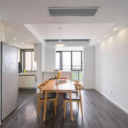 Dieses Apartment verfügt auch über eine voll ausgestattete Küchenzeile mit allen notwendigen Annehmlichkeiten. Gäste werden in einem Umkreis von 5 km vom Flughafen Shanghai Hongqiao untergebracht.